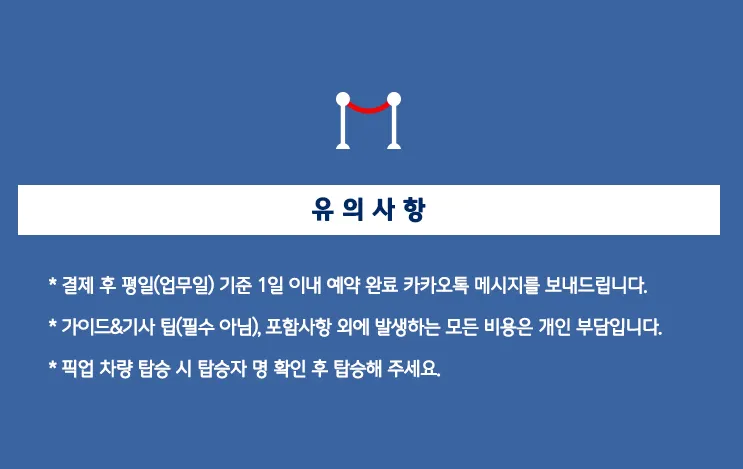 가고싶었던 코스 다 담겨있던 일정이라 예약했스빈다.